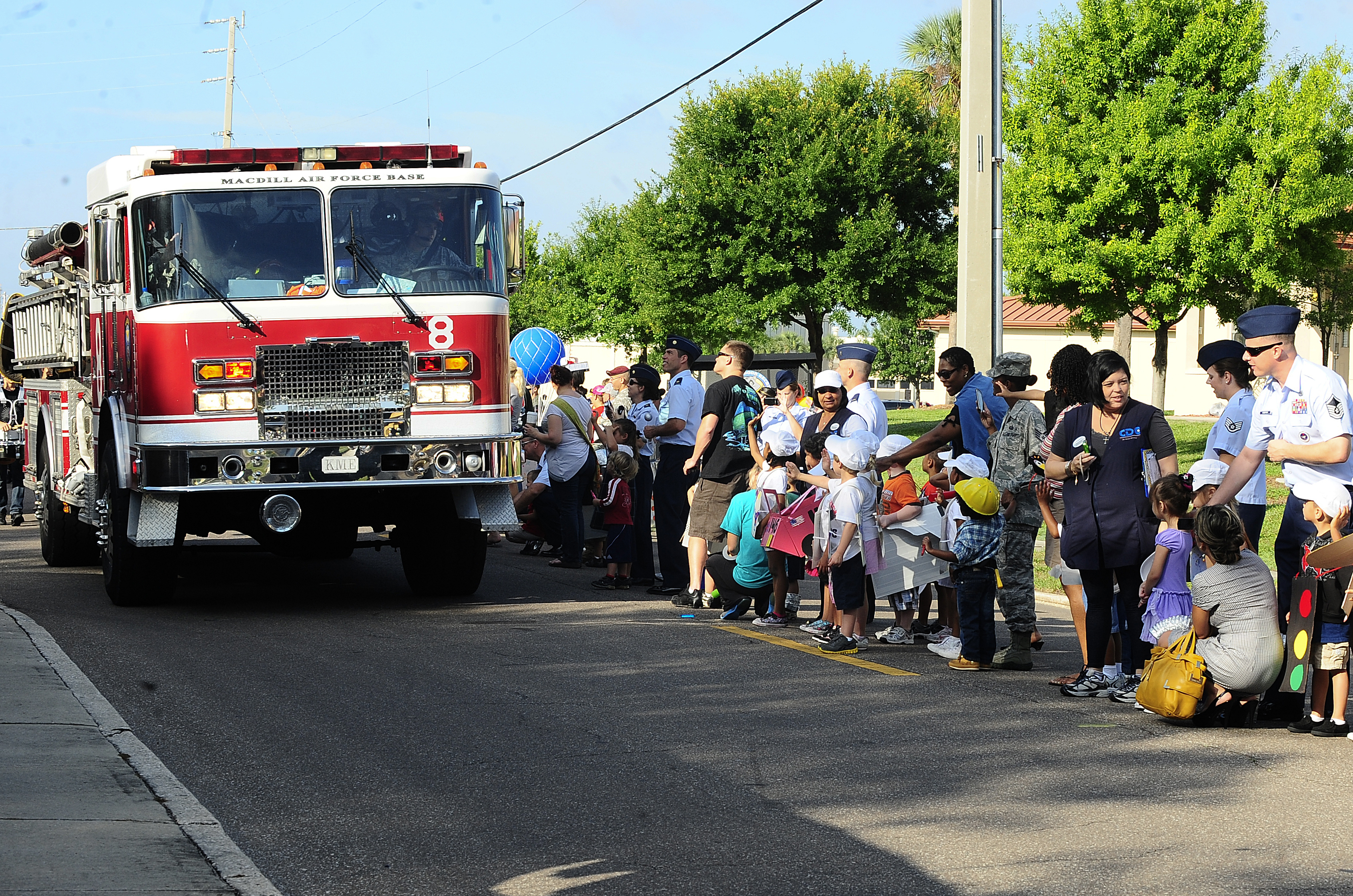 MacDill Air Force Base kicks of April as the Month of the Military Child with a parade through its streets April 2, 2012. The month of the Military Child is an opportunity to recognize the more than 1.7 million children, with a parent or parent’s service in the military, for their heroism, character, courage, sacrifice and continued resilience. (U.S. Air Force photo by Senior Airman Melissa V. Paradise)