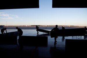 U.S. Air Force Airman 1st Class Caylor Jones, a 6th Aircraft Maintenance Squadron communications and navigation apprentice, closes a cowling on a KC-135 Stratotanker aircraft at MacDill Air Force Base, Fla., Nov. 19, 2018. Each KC-135 engine has a cowling door on both sides that closes tight to